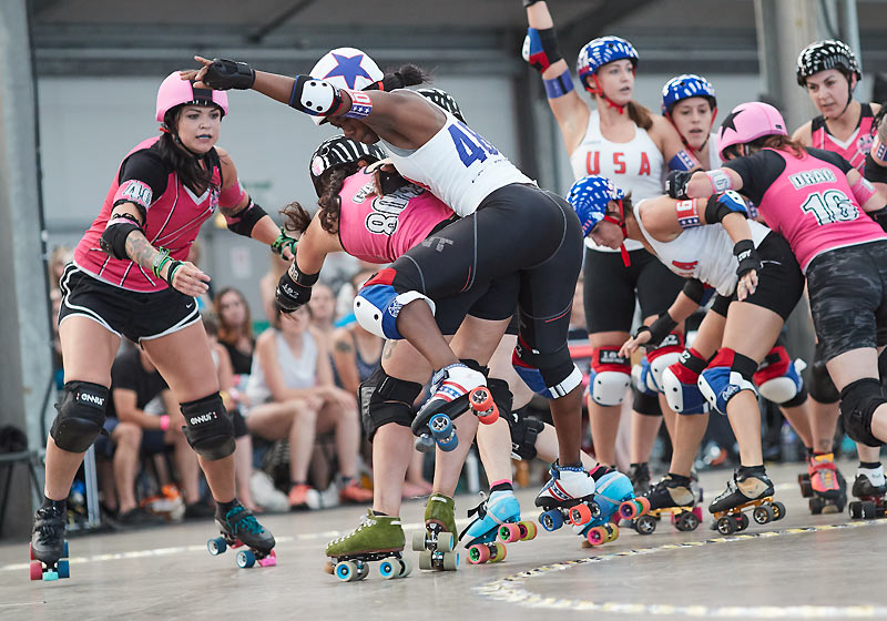 London Rollergirls versus USA at the Newark Showground in 2017.